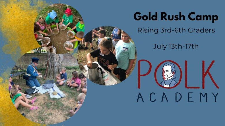 In James K. Polk’s final address to Congress, he confirmed the discovery of gold in California! Campers will engage in 5 days of hands-on activities and exciting presentations that will take them from the Polk White House, to the volunteer army corps of the Mexican-American War, to the Oregon Trail, and all the way to the goldfields of California! Fun activities will include a gold panning and gem finding experience and more.